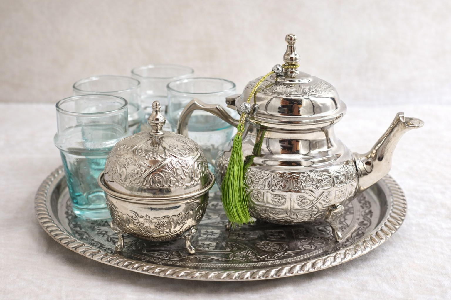 Pack Ceremonia del Té Marroquí Completo - Juego Tradicional de Alpaca Plateada y Cristal Beldi