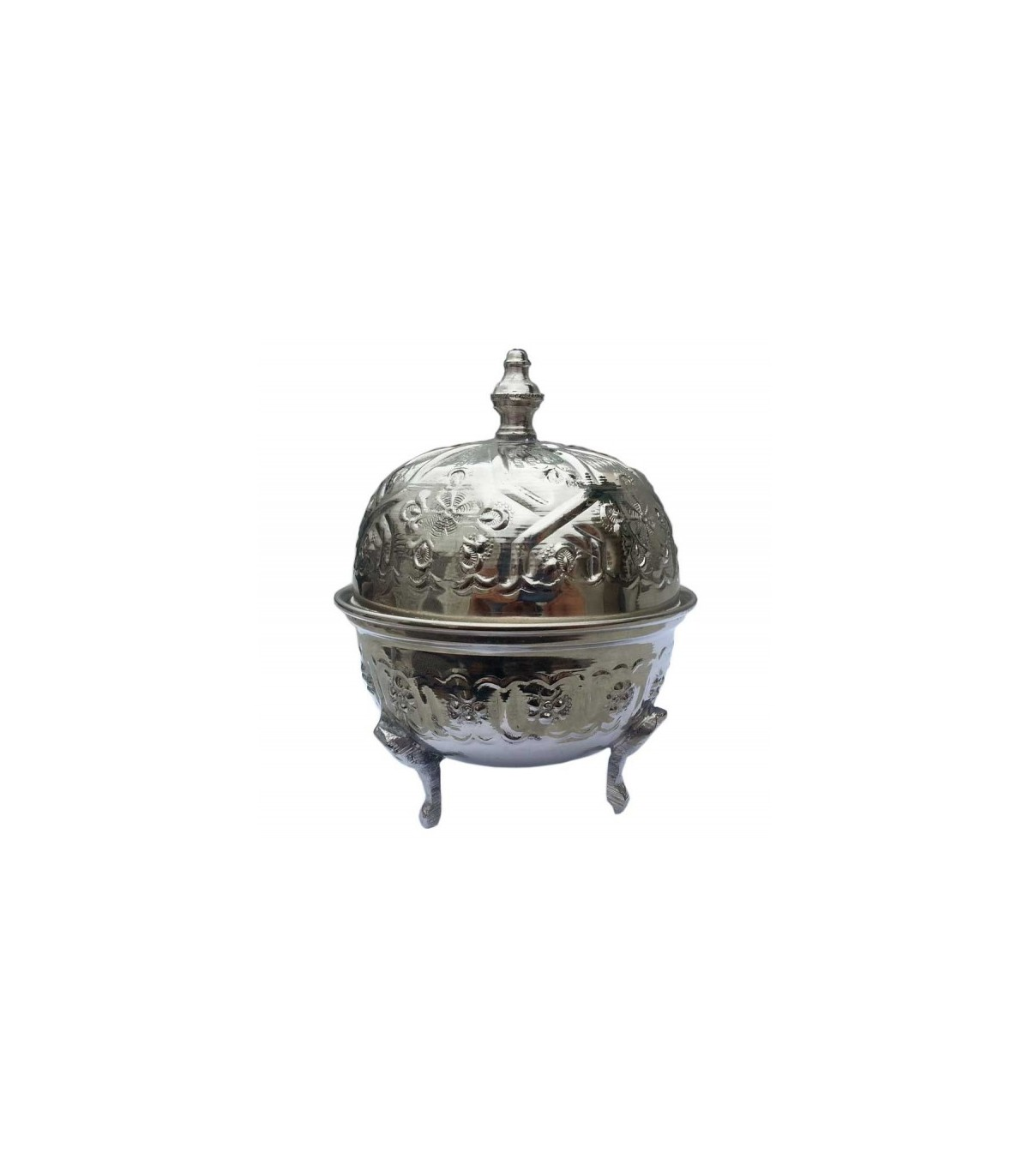 Tetera de Alpaca: Repujada a mano con motivos árabes, con patas decorativas y borla tradicional. No apta para fuego directo (usar infusión indirecta).